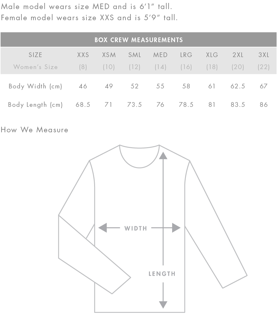 Unisex. Regular fit. Crew sweat, raglan sleeves. Heavy weight, 350 GSM. 80% cotton 20% polyester anti-pill fleece. Neck and sleeve cuff ribbing, preshrunk to minimise shrinkage.