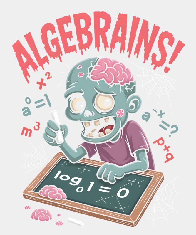 Brains... and equations. This “Algebrains” design mashes up math class with a zombie apocalypse, featuring an undead teacher scrawling formulas on the blackboard like it’s their afterlife mission. Perfect for math nerds, science teachers, and anyone who loves a clever pun with a side of spooky. Whether you're solving for X or just shambling through a Monday morning, this tee or hoodie brings undead charm and algebraic attitude to your look. Ideal for Halloween, Pi Day, or repping your nerd pride all year round—because who says zombies can’t be smart?