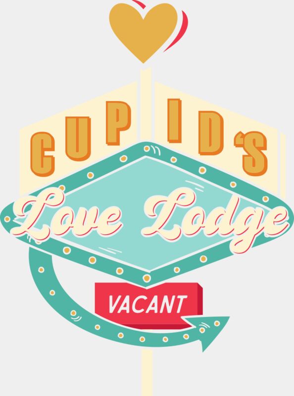 A playful retro motel/lodge-style sign design featuring the text “Cupid’s Love Lodge” with “Vacant” displayed at the bottom. Inspired by classic roadside motel signage, this design blends vintage Americana vibes with cheeky Valentine’s humour. Perfect for anti-Valentine looks, fun couples’ merch, or anyone embracing single life with style. Ideal for t-shirts, hoodies, totes, and statement Valentine’s apparel with a nostalgic twist. 💘🏨