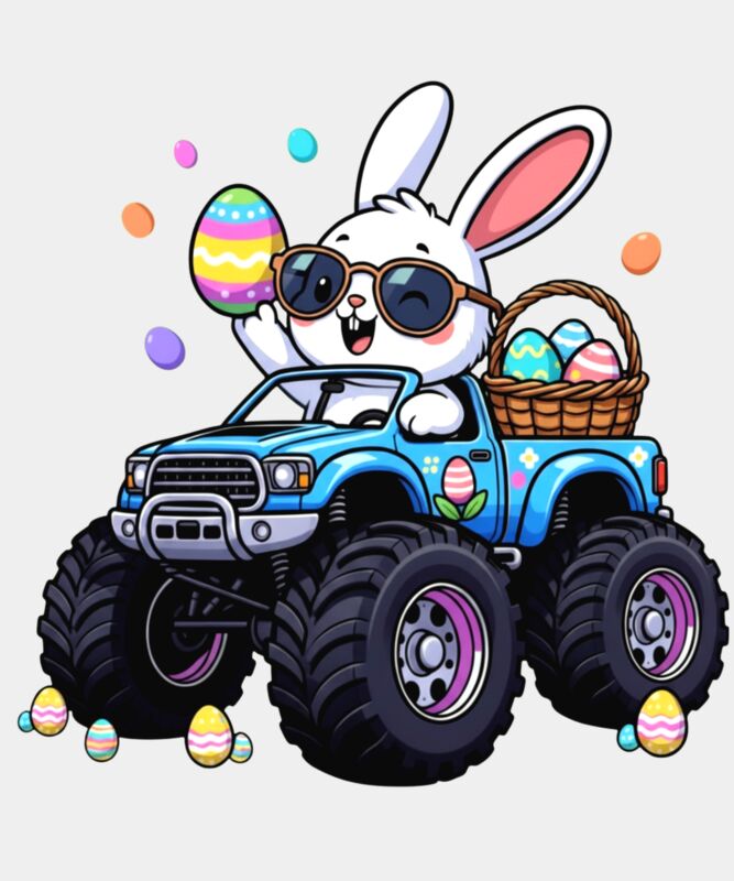 A bold and playful Easter design featuring a fun Easter bunny driving a powerful monster truck. This high-energy design blends Easter fun with monster truck excitement, making it perfect for kids and anyone who loves big trucks and holiday humour. Great for Easter egg hunts, school events, and spring celebrations, this design looks awesome on t-shirts, hoodies, and kids’ apparel for a fun and unique Easter vibe.