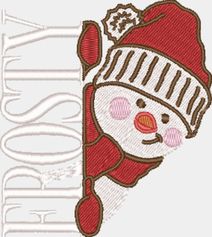 A cute and elegant 6 colour embroidery design of a snowman peaking around the word 'frosty'