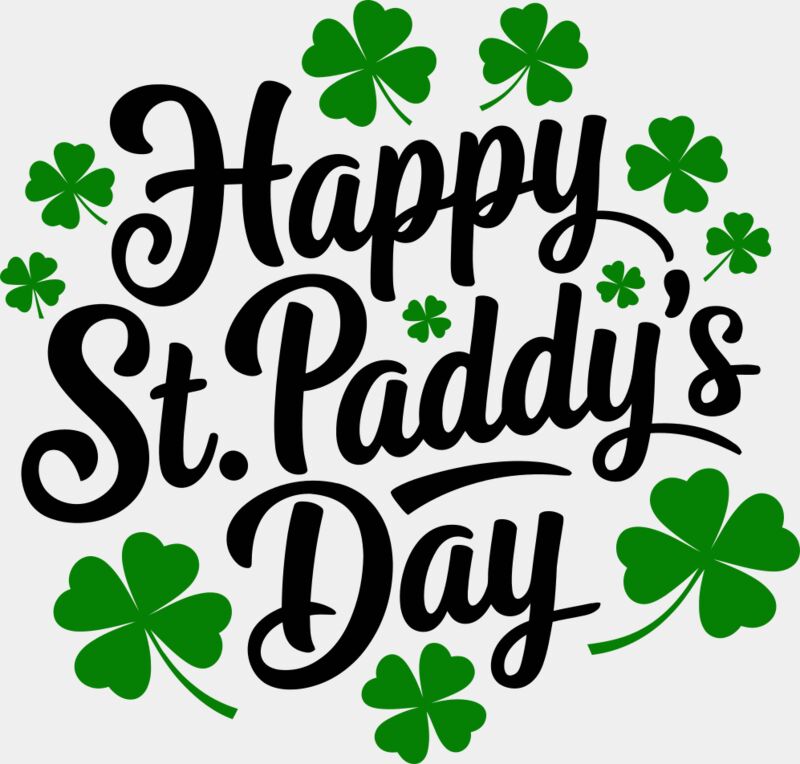 A bold and festive text-based design featuring the phrase “Happy St Paddy’s Day” in black font, accented with vibrant green clovers. Simple yet striking, this design combines classic Irish charm with a modern twist. Perfect for tees, hoodies, mugs, and accessories, it adds a playful and lucky touch to your St. Patrick’s Day celebrations.