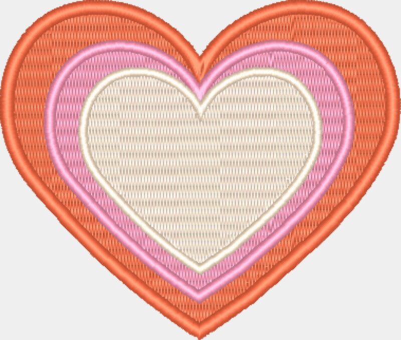 A large-format layered heart embroidery designed for a 15cm hoop, allowing full detail and stitch variation to stand out. The combination of tatami and satin stitching creates a dimensional, high-quality finish. Perfect for statement placements on apparel, this size delivers impact while maintaining a soft, feminine aesthetic ideal for Mother’s Day collections and matching sets.