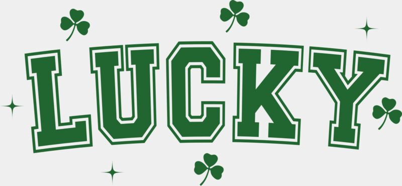 A sporty and festive St. Patrick’s Day design featuring the word “Lucky” in a bold jersey-style font, accompanied by small clovers for a playful touch. Perfect for a subtle yet stylish front-of-shirt detail, this design blends athletic vibes with holiday cheer. Ideal for tees, hoodies, or casual wear, it’s a fun and lucky way to celebrate St. Paddy’s Day in a clean, modern style.