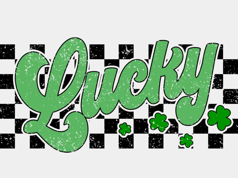 A bold and energetic St. Patrick’s Day text-based design featuring the word “Lucky” in vibrant green, set against a black checkered racing-style background. Accented with a few small clovers, this design combines speed, luck, and festive Irish charm in a playful, modern way. Perfect for tees, hoodies, or accessories, it adds a dynamic and spirited touch to St. Paddy’s Day celebrations.