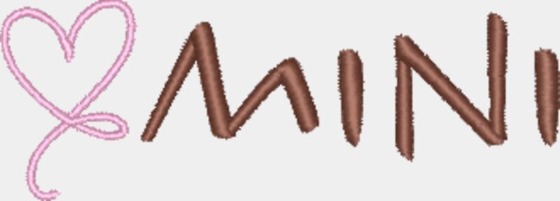 A cute, minimal “Mini” embroidery with heart detail, optimised for hats and perfect for matching sets.