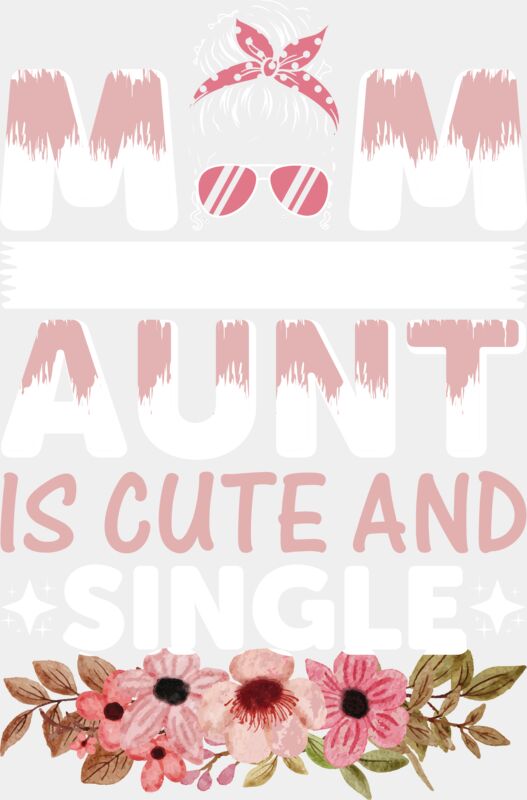 A cheeky and lighthearted design featuring the phrase "My Mom is Taken but My Aunt is Cute and Single" in a mix of playful fonts. The “O” in Mom is creatively replaced with a fun sketch of an aunt’s face, adding personality and flair. “Single” is emphasized with charming floral elements underneath and cute little stars on either side, giving it a sparkly, attention-grabbing finish. A perfect design for proud nieces and nephews with awesome single aunts!