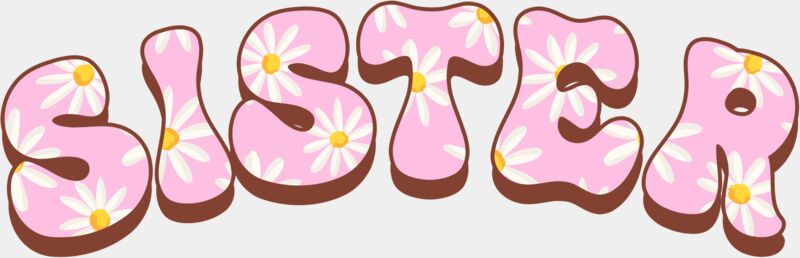 For the groovy girl who’s proud to be a sister. This retro-inspired design spells out “Sister” in bold pink letters, each one adorned with sweet white flowers for that nostalgic, flower-power feel. It’s playful, feminine, and full of charm—perfect for celebrating the bond only sisters share. Whether it’s for Sisters Day or just because, this design is a total vibe.
