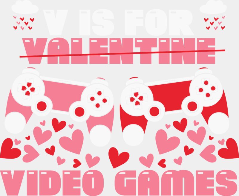 A playful and gamer-inspired design featuring video game controllers with the phrase “V is for Valentines” at the top (crossed out with a line) and “Video Games” at the bottom. Perfect for couples who love gaming, gamers with a sense of humor, or anyone who prefers consoles over Cupid, this design blends romance with witty, nerdy charm. Ideal for Valentine’s Day, anniversaries, or everyday casual wear, it’s a fun and stylish way to celebrate love—and your favorite pastime.