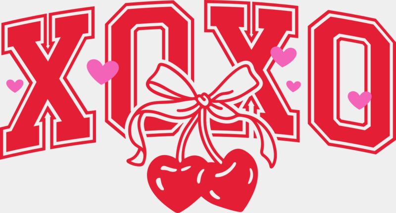 A bold and playful design featuring “XOXO” in large red jersey-style lettering, paired with cute pink hearts and two bright red cherries tied together with a sweet bow. With a fun mix of sporty and flirty vibes, this eye-catching design is perfect for Valentine’s Day, love-themed outfits, or everyday wear with a cute twist. Ideal for t-shirts, hoodies, totes, and gifts for anyone who loves bold colour and sweet details. 🍒❤️