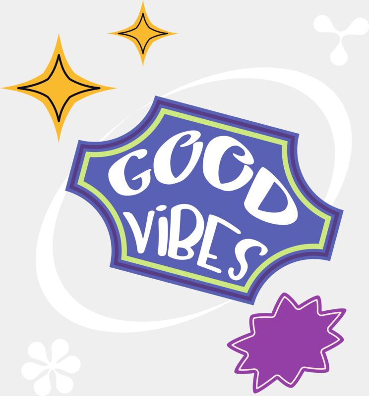 Bright “Good Vibes” typography with stars and abstract shapes, capturing playful Y2K energy. Perfect for uplifting designs, lifestyle apparel, and nostalgic 2000s aesthetics.