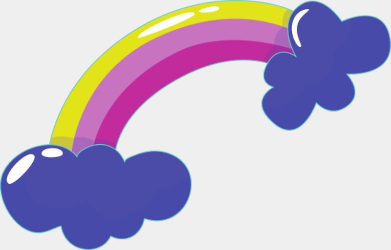 Bright rainbow with clouds, capturing playful Y2K positivity and nostalgic vibes.