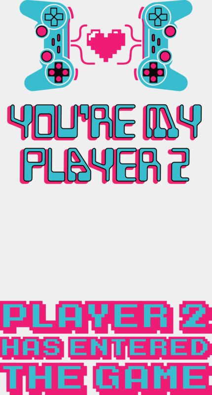 A cute and playful gamer-inspired design featuring two game controllers facing each other with a heart in the middle, paired with the phrase “You’re My Player 2” and the tagline “Player 2 Has Entered the Game” at the bottom. Perfect for couples, gaming partners, and anyone who loves playful, nerdy romance, this design celebrates teamwork, connection, and shared adventures. Ideal for Valentine’s Day, anniversaries, or everyday wear, it adds a fun and heartwarming touch to tees, hoodies, tote bags, mugs, and more.