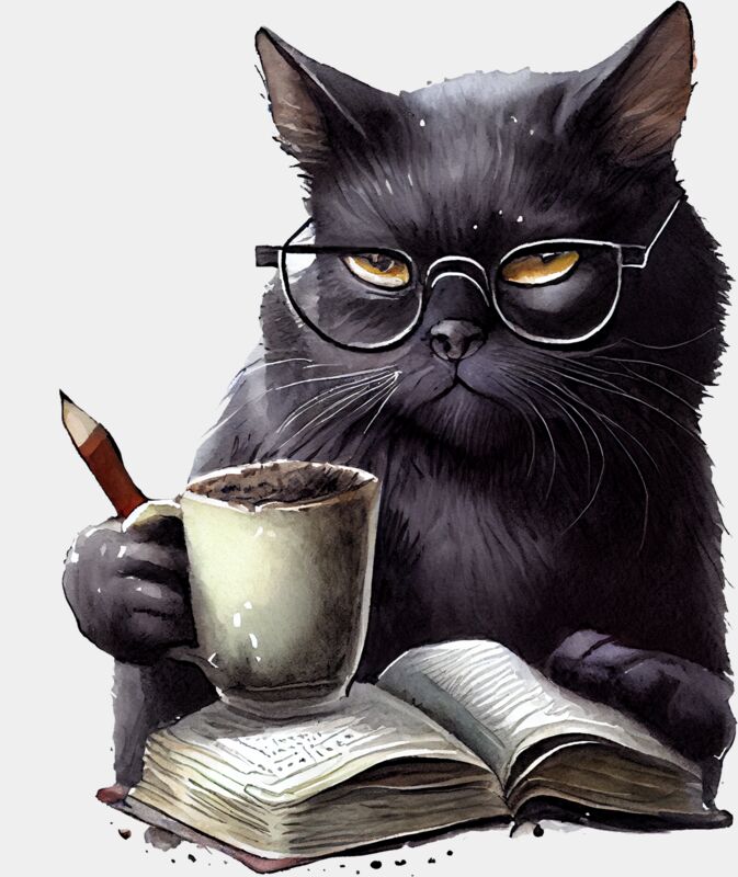 black cat reading book 3