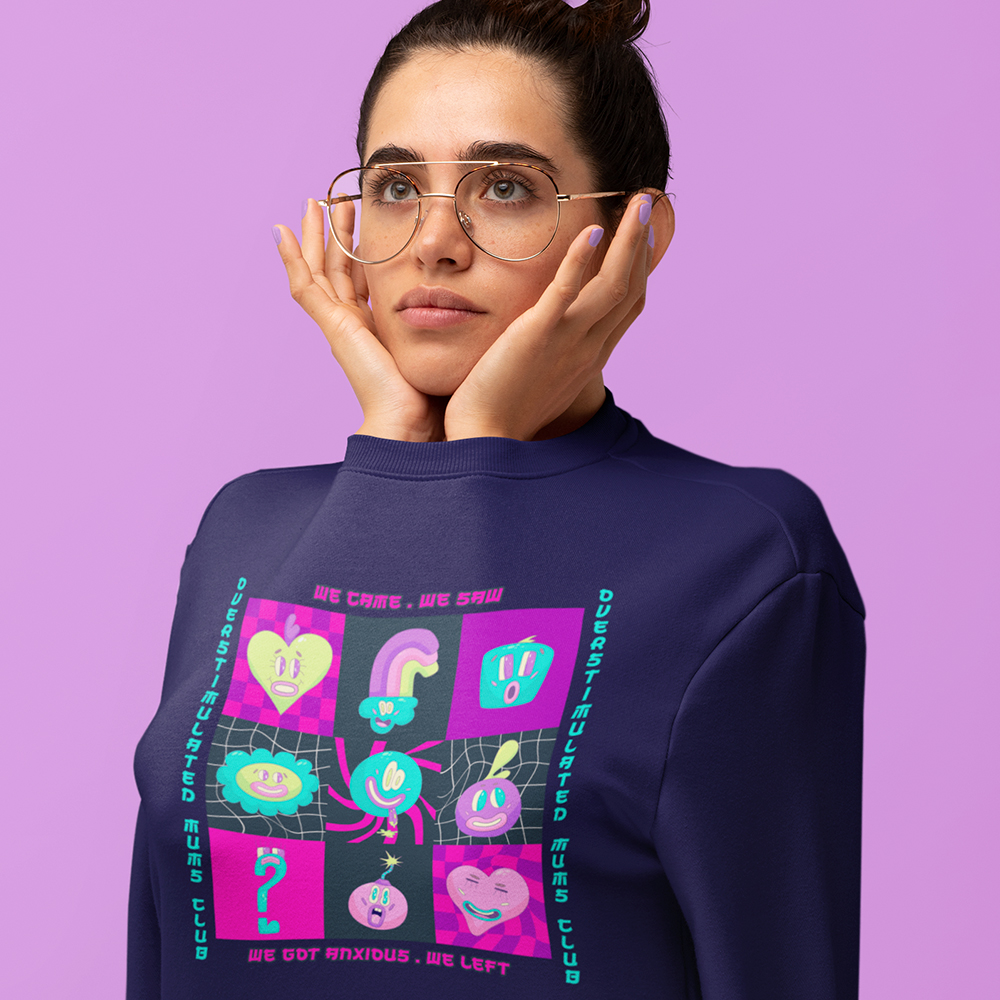 Bold, slightly chaotic, unafraid of taking up space. Distressed text on black. A loud graphic with a one-liner that sounds like it belongs on a vintage band tee but make it 2026. For the mum who has fully embraced the organised chaos of her life and wants her wardrobe to reflect that.