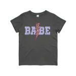 A bold and stylish women’s t-shirt featuring the striking “MAMA” lightning design, printed using high-quality DTF (Direct to Film) for a vibrant and long-lasting finish. Set on a premium AS Colour Maple Tee in charcoal, this design offers a flattering fit with a modern and edgy look. Perfect for pairing with the matching “BABE” version, it’s ideal for Mother’s Day, family outings, and coordinated outfits. Comfortable, versatile, and on-trend, this tee is a great choice for everyday wear and stylish mum apparel.